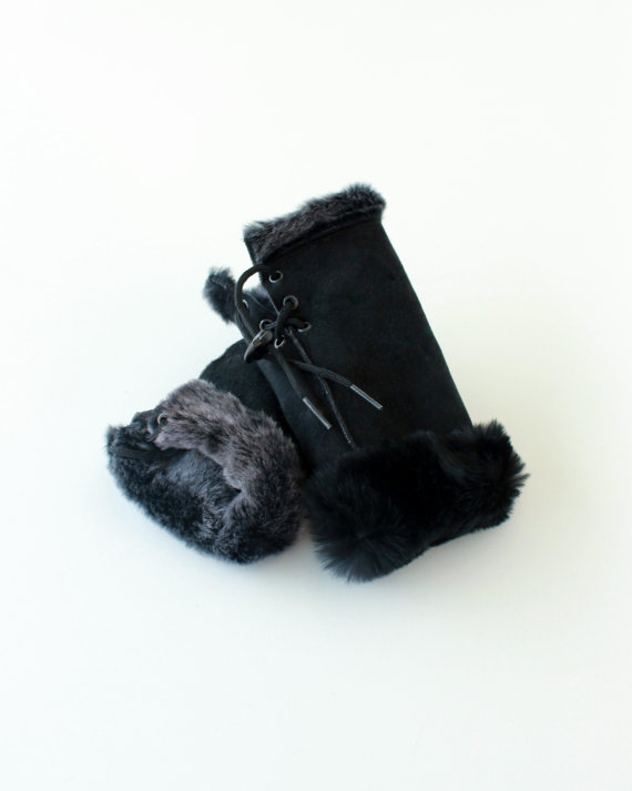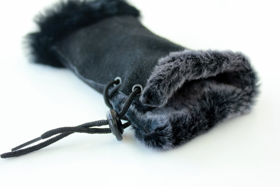 Handmade Black sheep skin leather Fingerless Gloves with warm and soft Fur | Lefushop :: Leather & Fur goods