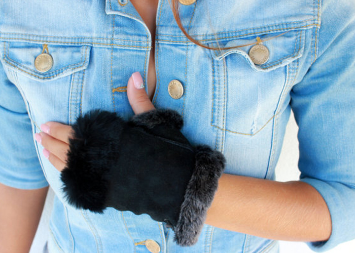 Elegant, warm and modern sheep skin leather finger less gloves with soft fur, can be combined with any look you like. No matter if you are going for a walk, shopping or a coffee with friends, the gloves will keep you warm and complement your style!