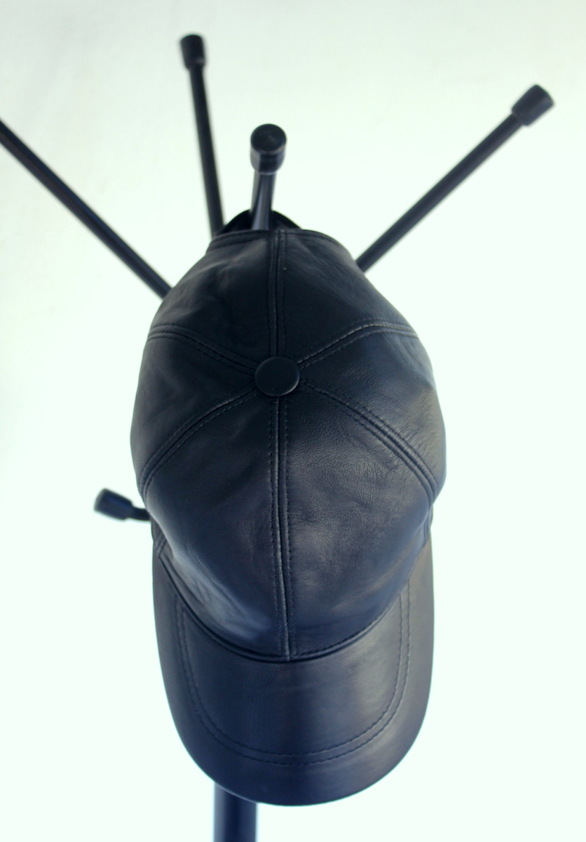 Handmade black unisex leather ball cap | Lefushop :: Leather & Fur goods