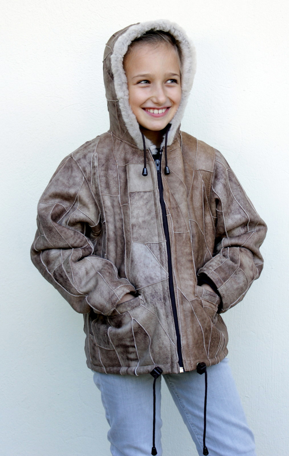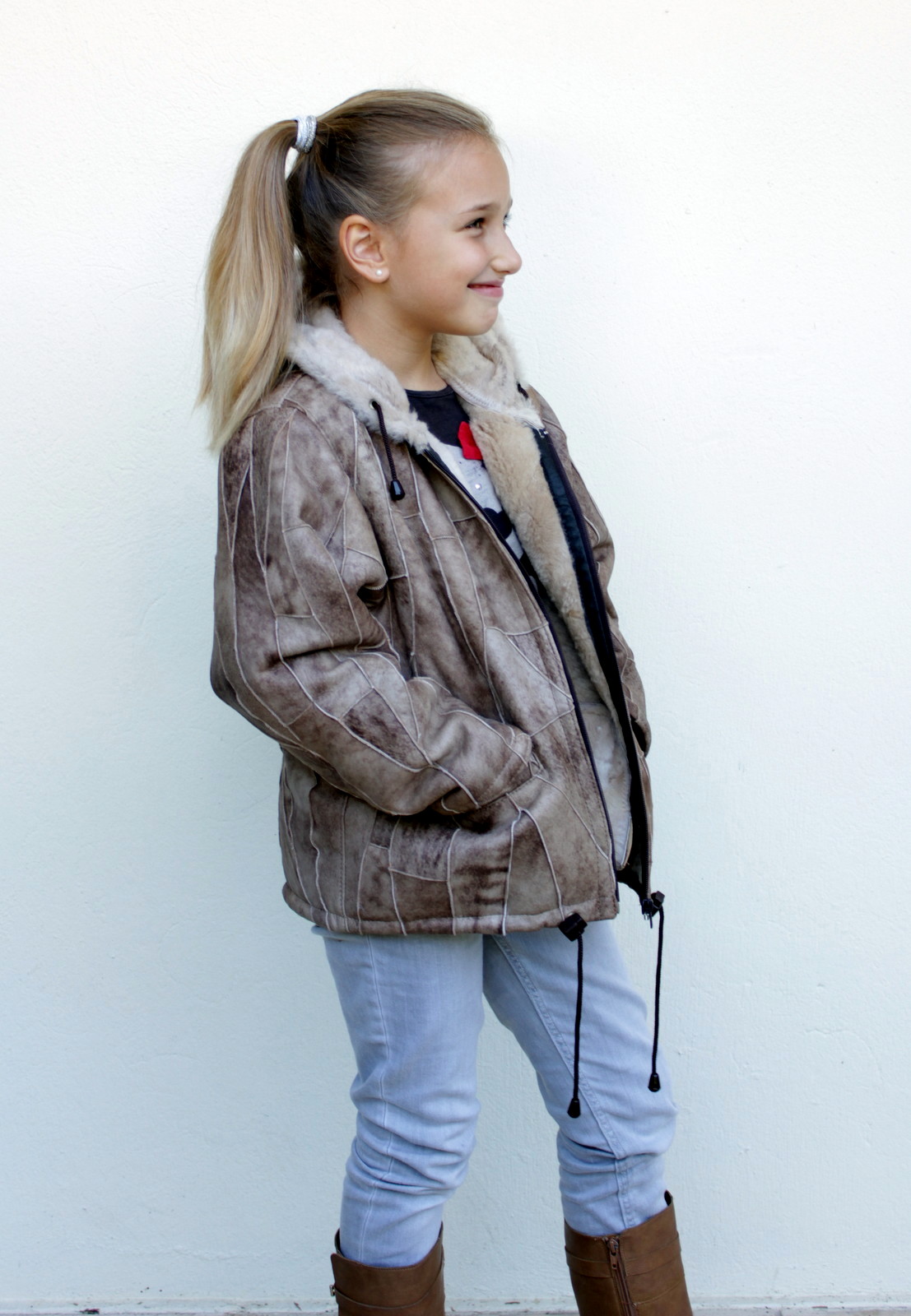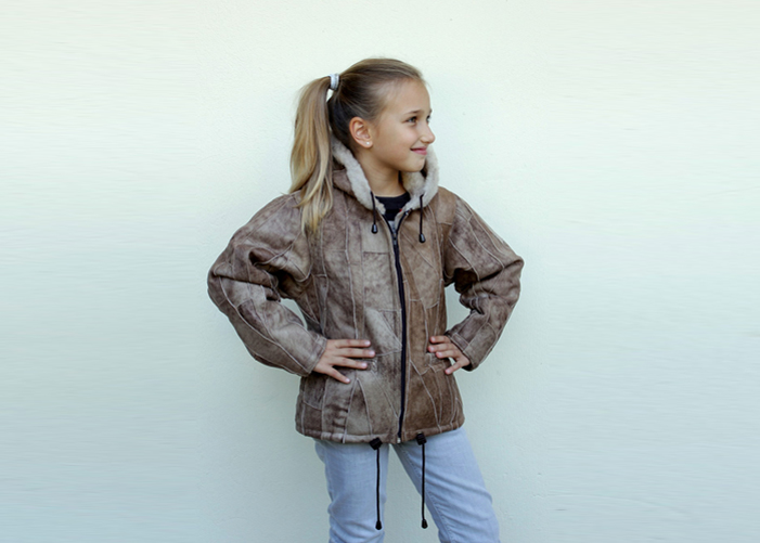 A beautiful jacket made with pieces of leather and fur inside of it for extra warm and comfort for your little ones! Rest assure that no matter how cold the weather is, with this jacket your kid will stay warm.