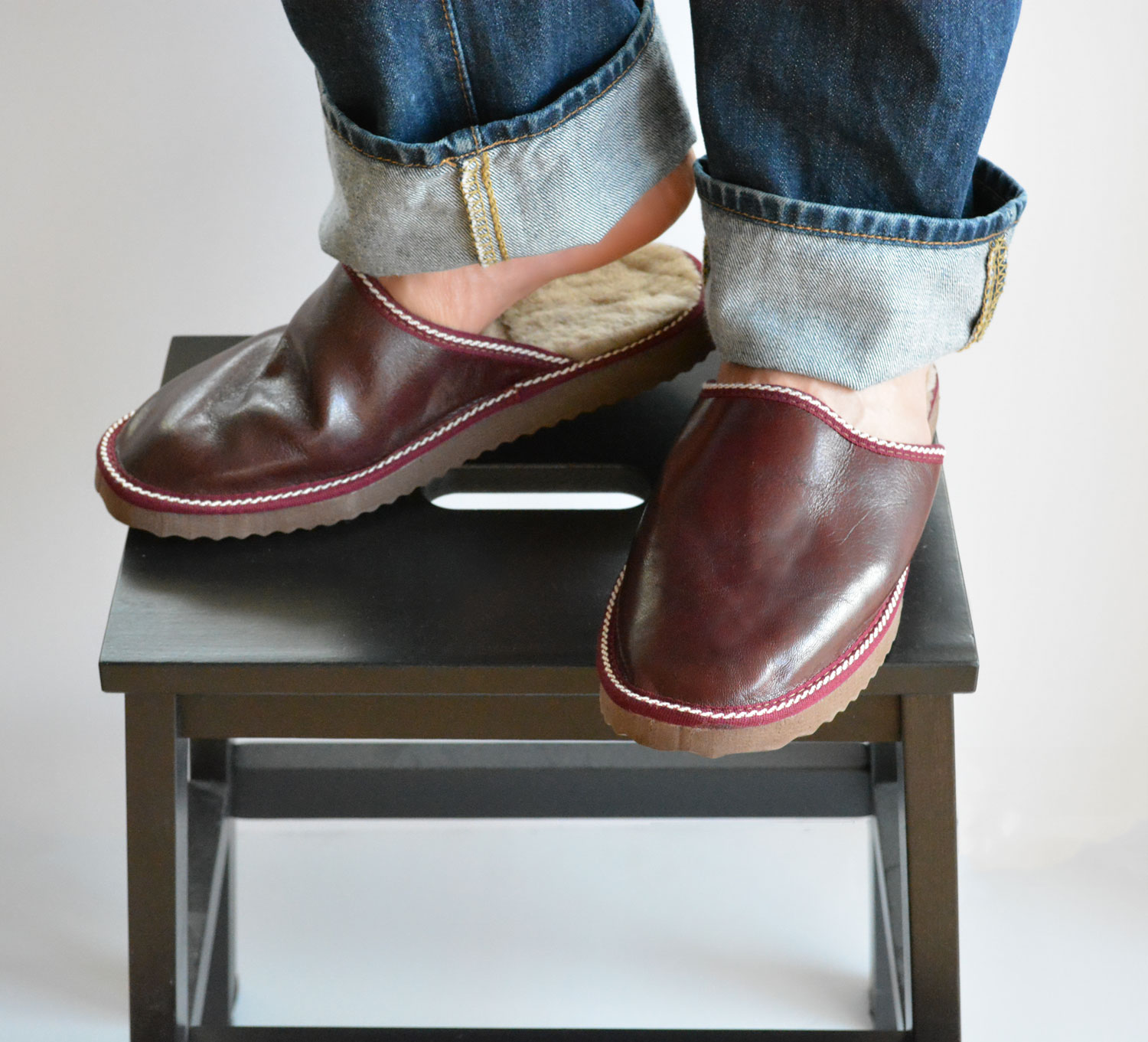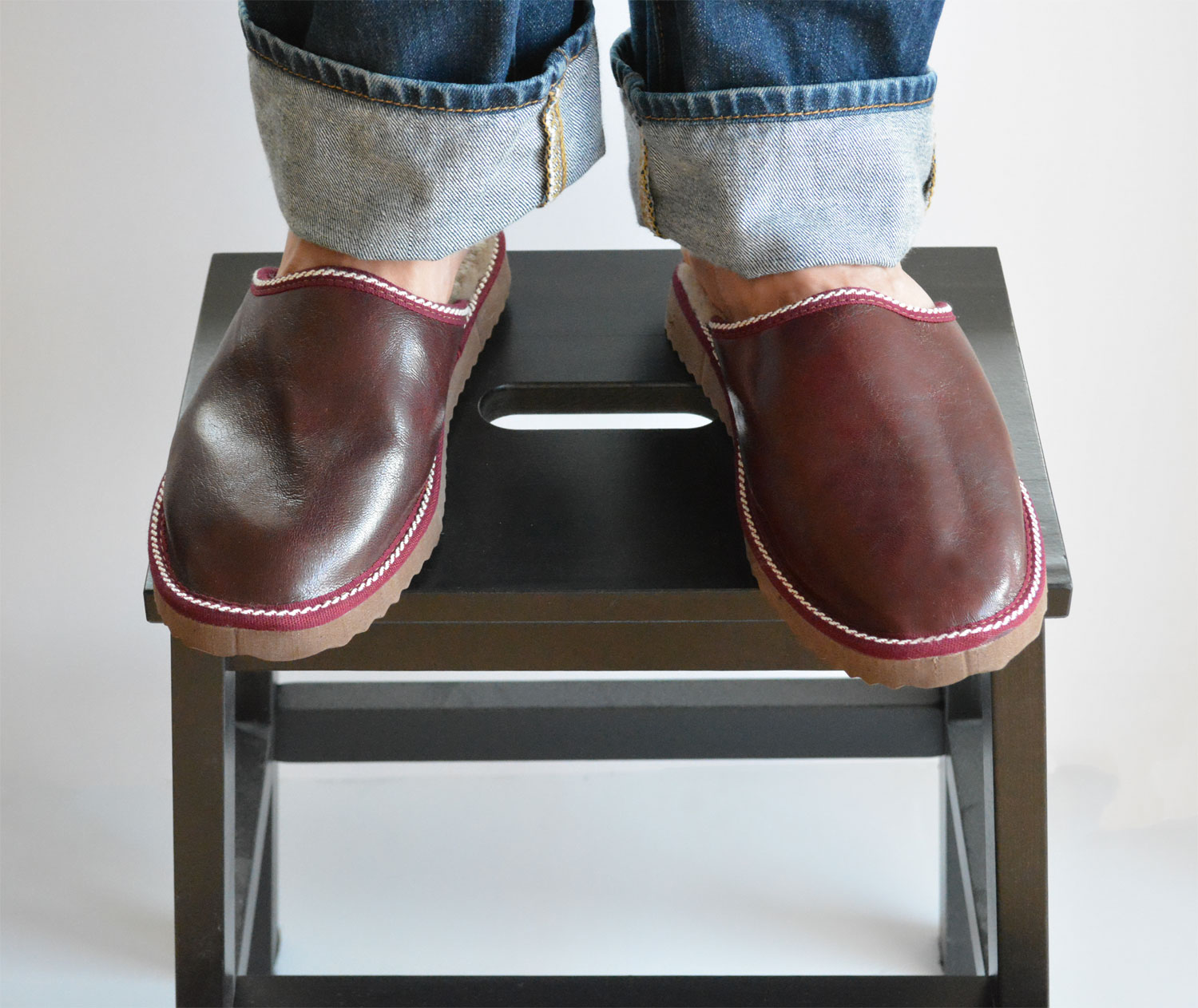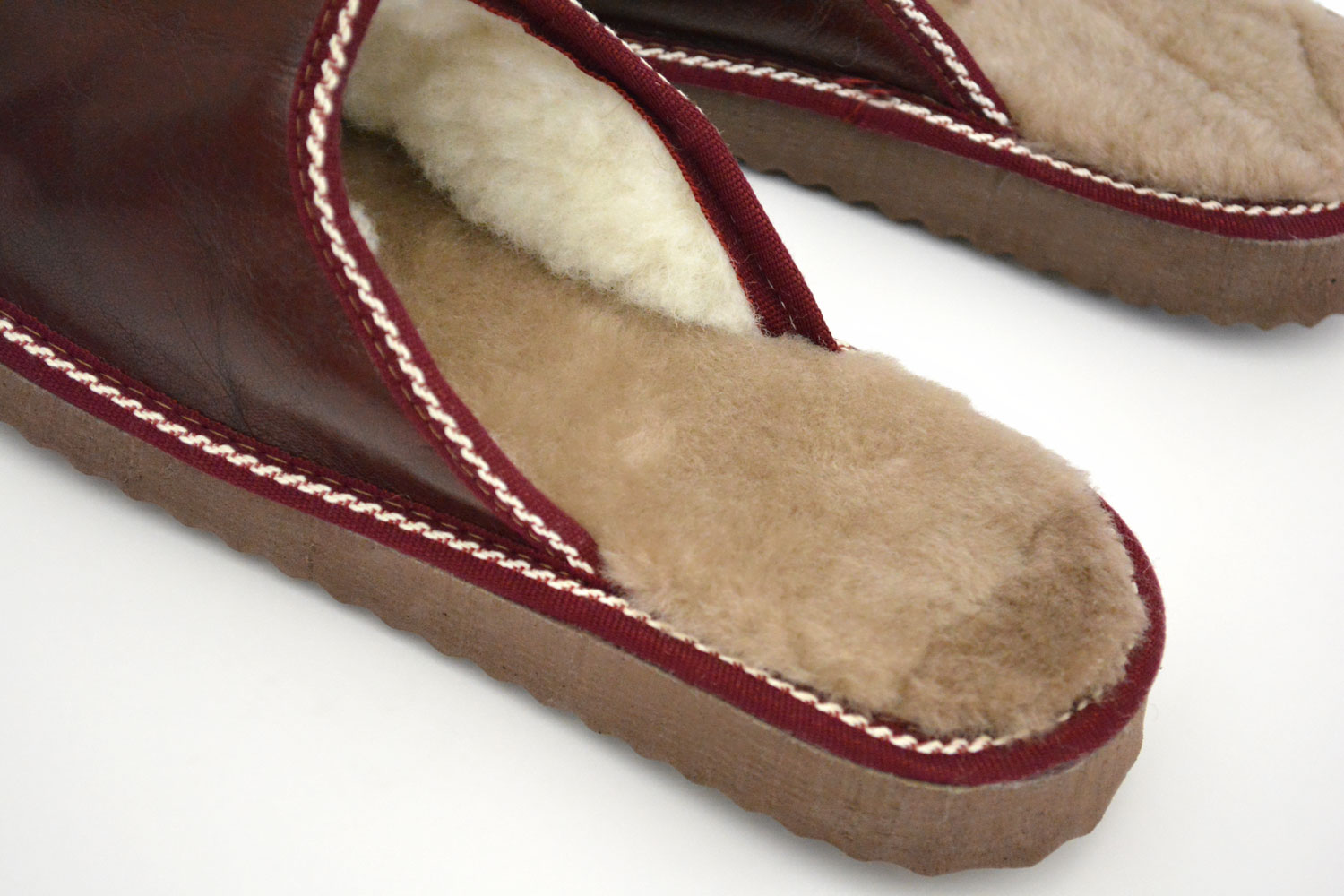 The outside of the slippers is made with soft sheep skin napa leather while the eco friendly fur inside, keeps your feet really warm. The EVA sole is really lightweight, keeps your feet away of the cold ground and makes your walking really comfortable.