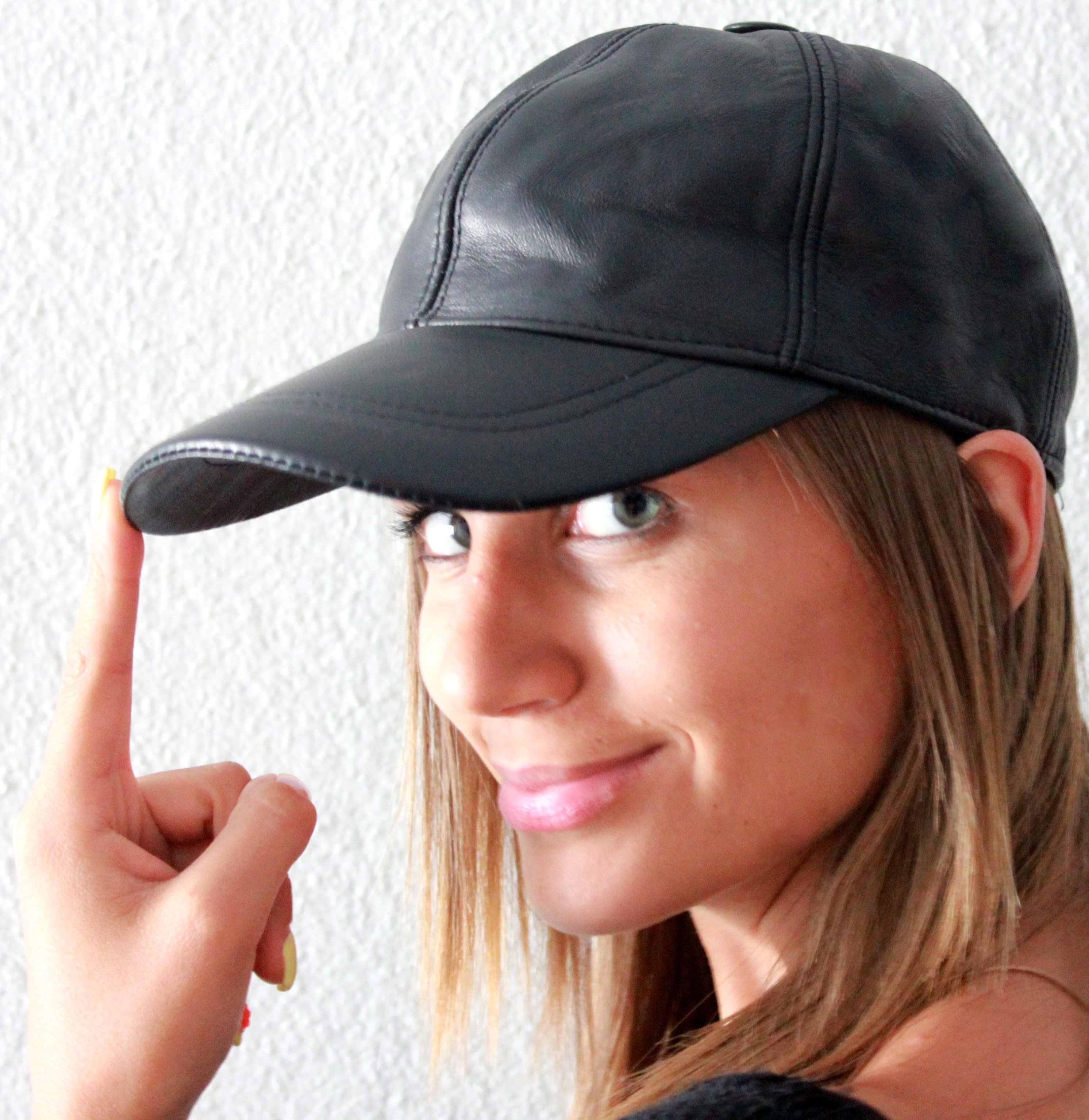 Handmade black unisex leather ball cap | Lefushop :: Leather & Fur goods