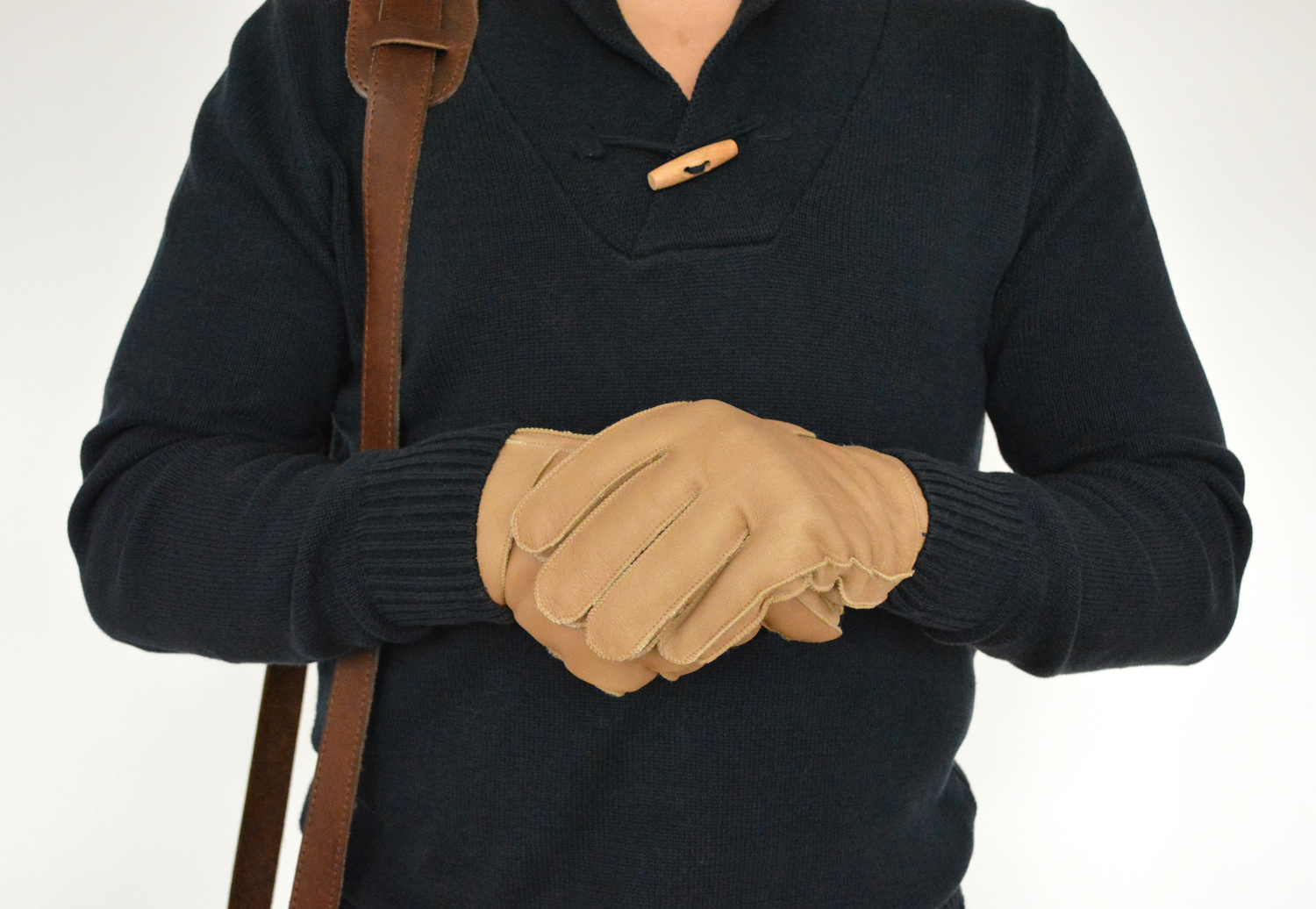 Handmade tan brown leather gloves for men made with nappa sheepskin leather