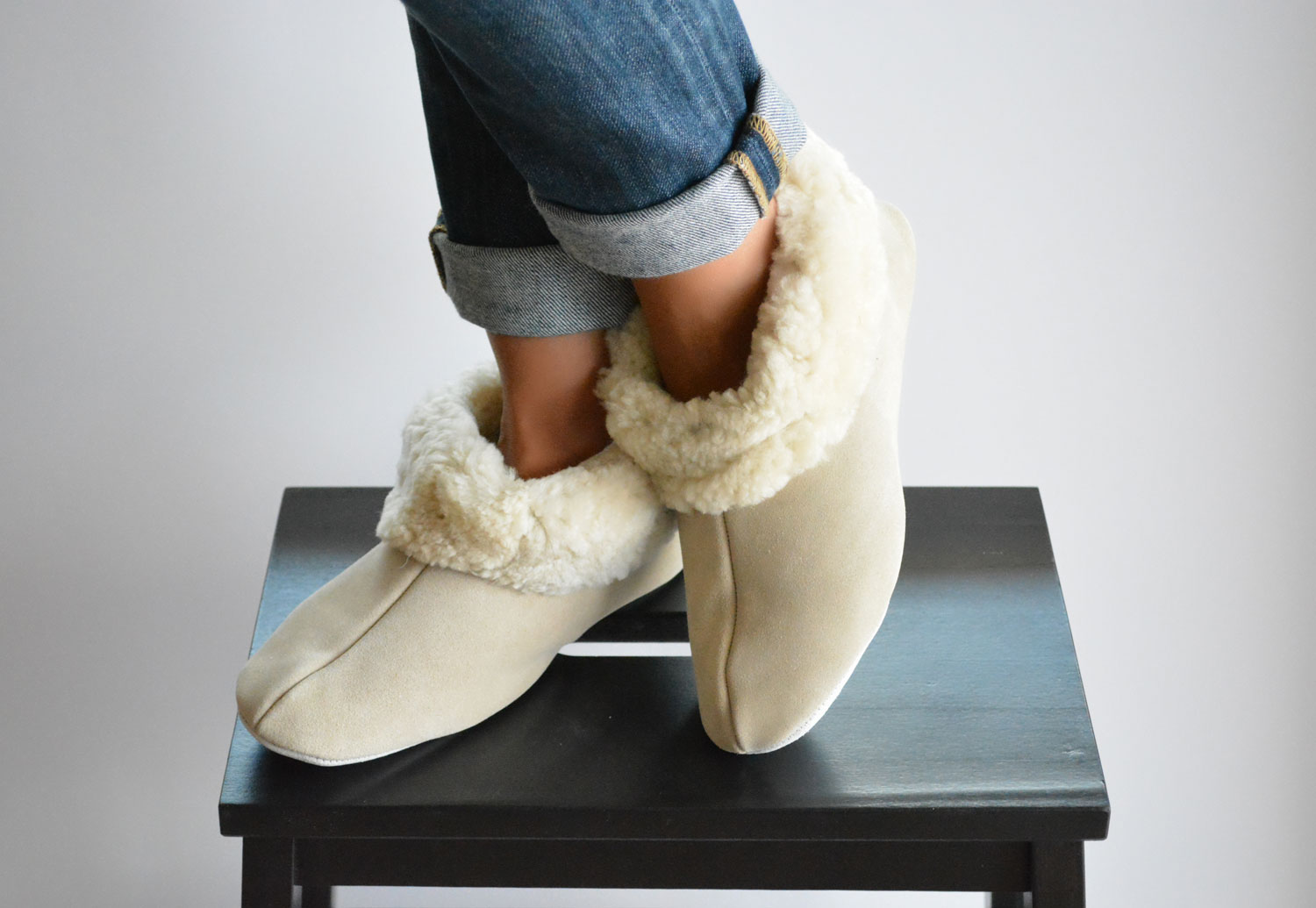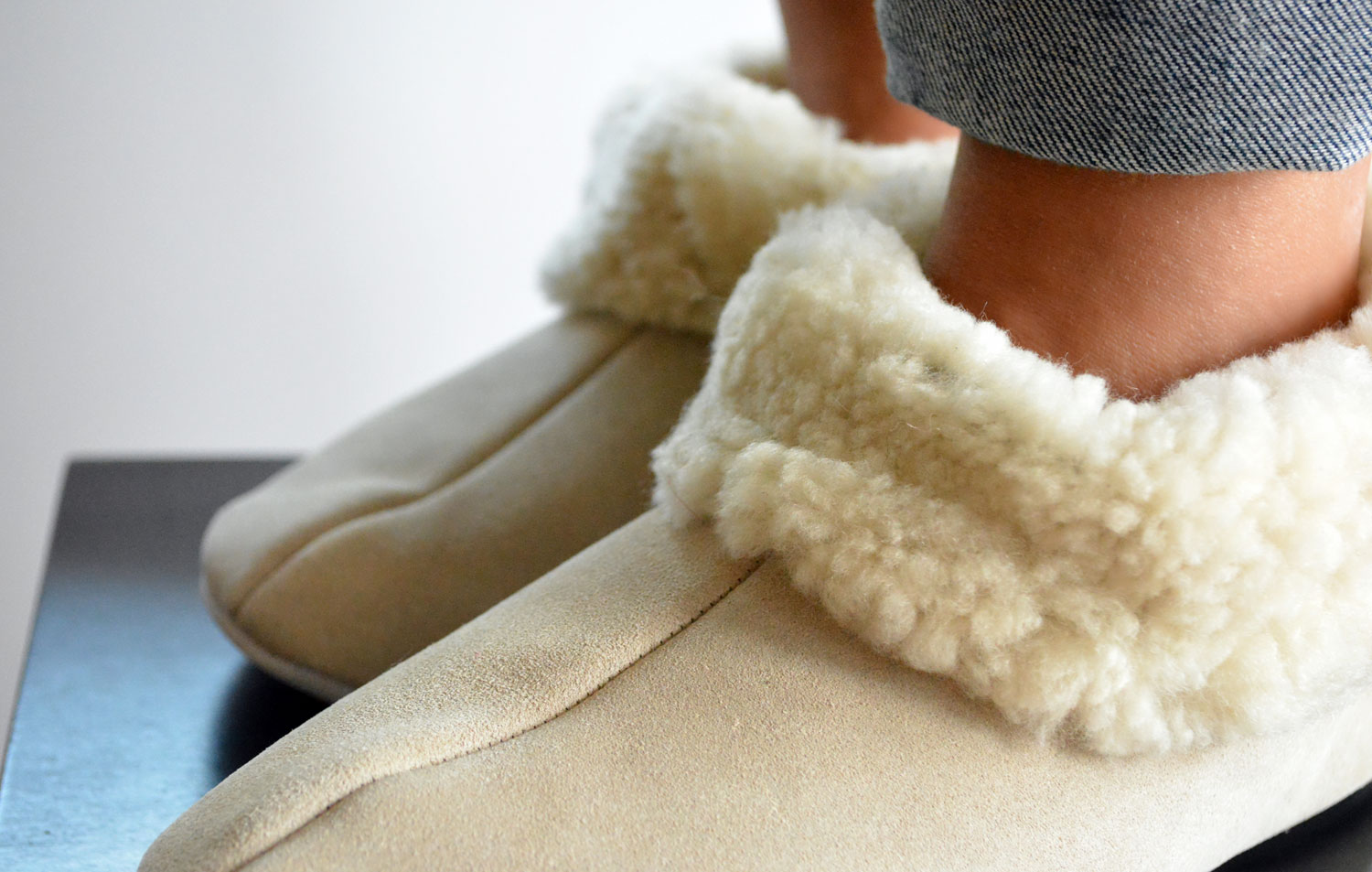 The outside of the slippers is made with soft sheep skin suede leather while the eco friendly fur inside, keeps your feet really warm. The EVA sole is really lightweight, keeps your feet away of the cold ground and makes your walking really comfortable. To make the difference for women, we've placed a small piece of fur around the top of the slipper, to be even more warm for women's sensitive feet. For extra warm, we gave them the shape of a shoe to embrace the whole foot.